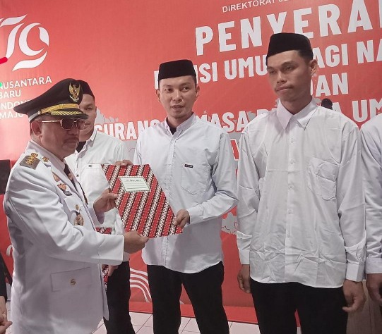 Gambar: Bupati Majene, H. A. Achmad Syukri Tammalele, SE., Memberikan Remisi secara simbolis pada perwakilan Narapidana Rutan Kelas II B Majene. Sabtu (17/8/24).