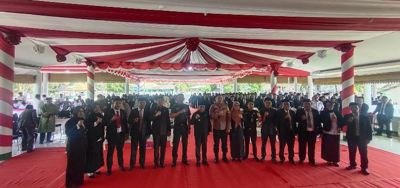 Gambar: Sebanyak 396 Anggota BPD se-kabupaten Majene resmi dikukuhkan oleh Bupati Majene Andi Syukri Tammalele. Pendopo Rujab Bupati, Rabu(31/07/24).
