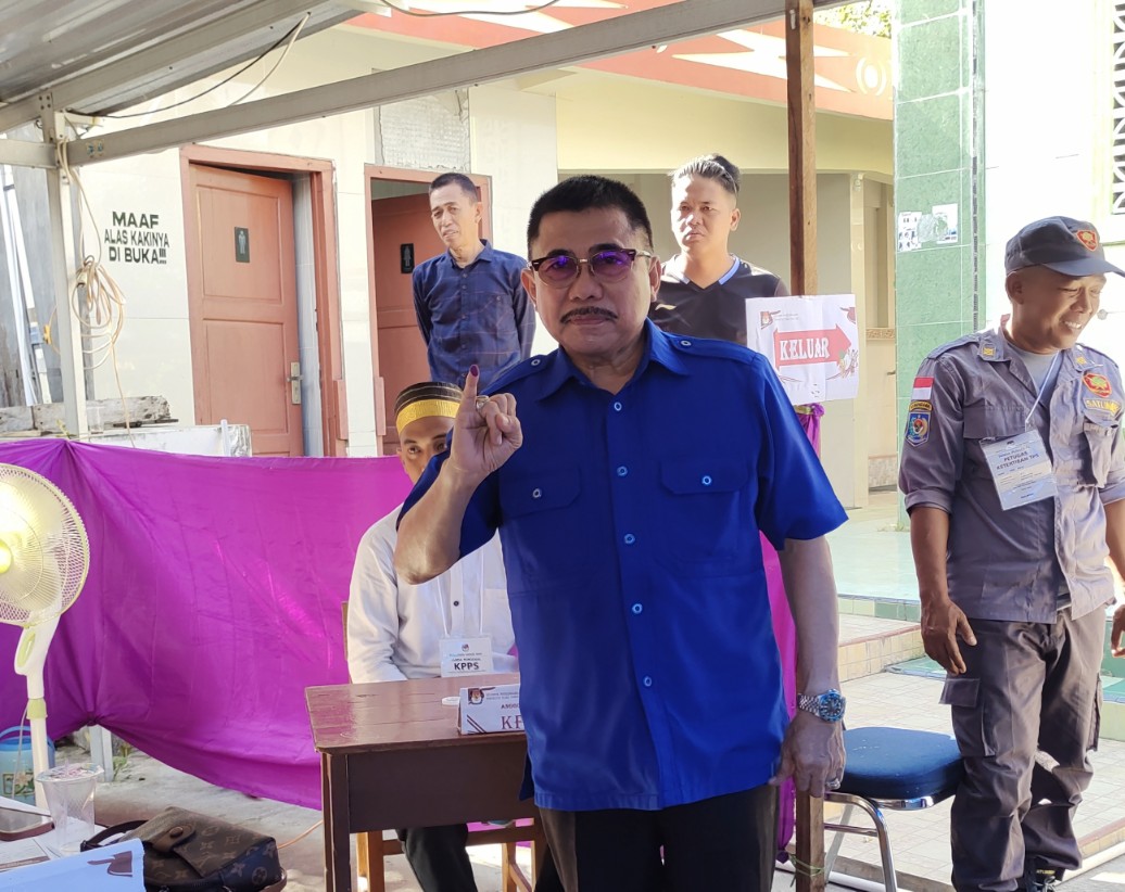 MAJENE – Bupati Majene nomor urut dua Andi Achmad Syukri Tammalele (AST) yang juga merupakan petahana pada Pilkada serentak menyalurkan hak suaranya di Tempat Pemungutan Suara (TPS) 3 Kelurahan Labuang, Majene, Rabu, 27 November 2024.