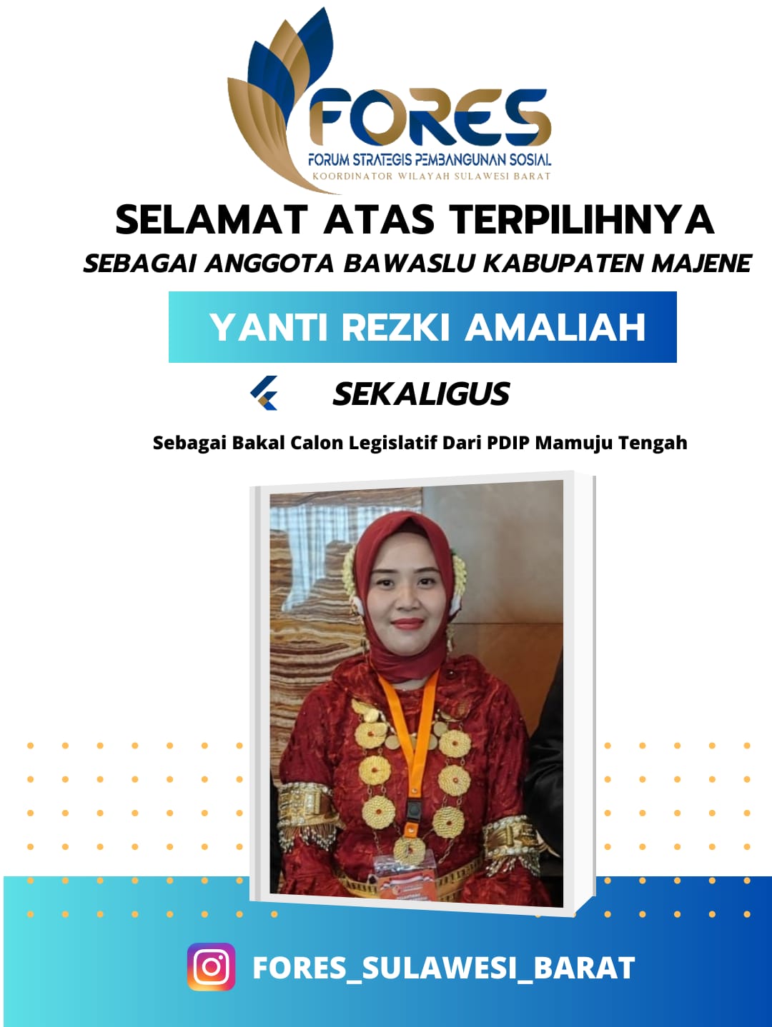 Mamuju — Anggota Komisioner Bawaslu kabupaten majene yang baru saja terpilih atas nama Yanti Rezki Amaliah menjadi sorotan menuai banyak sorotan, salah satunya datang dari Lembaga Pemantau Pemilu Forum Strategis Pembagunan Sosial (FORES) sulwaesi barat.