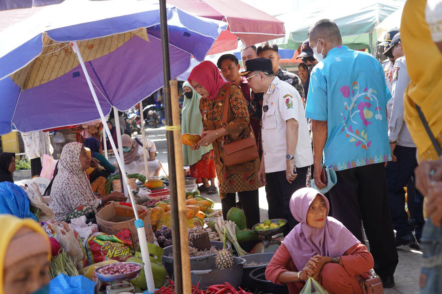 Foto Bupati Dan Wakil Bupati Majene Saat Mengunjungi Pasar Untuk Memastikan Harga Sembako Menjelang Lebaran.