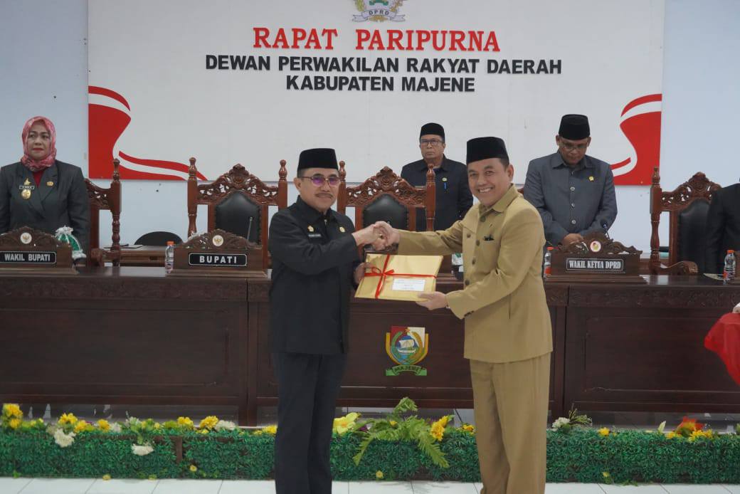 Majene,– Pemerintah Kabupaten Majene hari ini menggelar Rapat Paripurna DPRD untuk membahas Laporan Keterangan Pertanggungjawaban (LKPJ) Bupati Tahun Anggaran 2024. Rapat yang dipimpin oleh Ketua DPRD Kabupaten Majene, Bapak M. Idwar, dihadiri oleh Bupati Majene, H. Andi Achmad Syukri, S.E., M.M., segenap anggota DPRD, jajaran Forkopimda, pejabat pemerintah daerah, dan perwakilan masyarakat. Rabu, 9/4/2025.