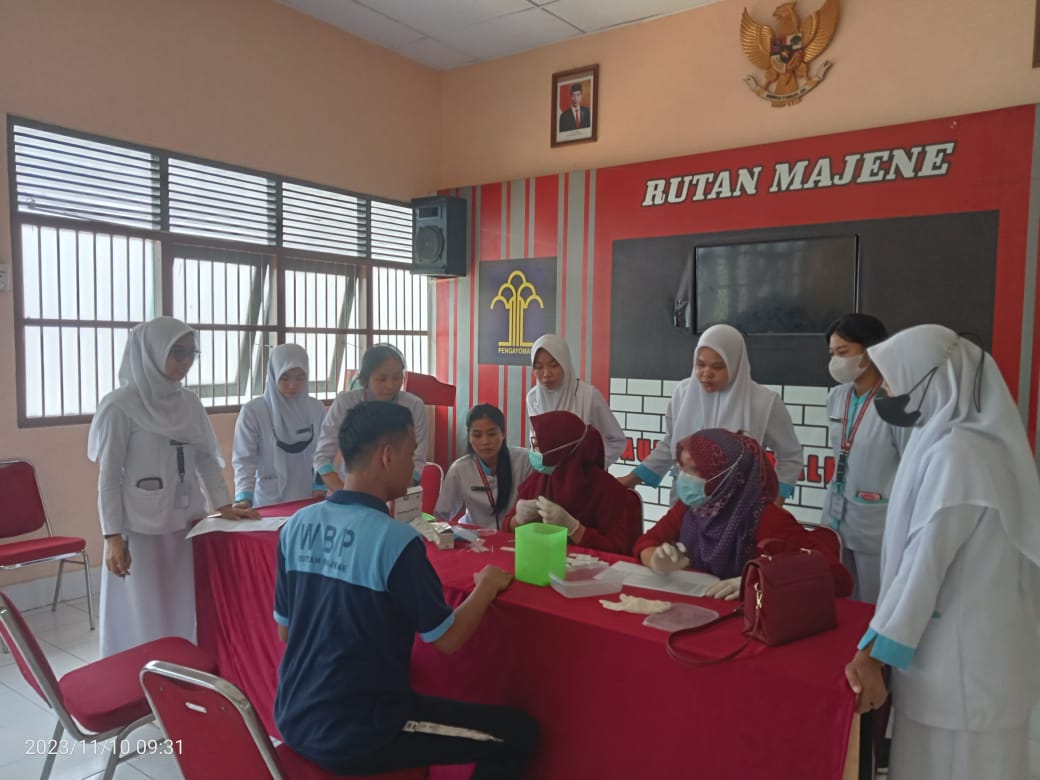 FOKUSTIMES–Rutan Kelas IIB Kabupaten Majene, melakukan Skrining HIV/AIDS kepada warga binaan pemasyarakatan dengan menggandeng PKM Banggae l, Jumat 10 November 2023.