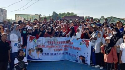 Calon Jama’ah Haji Mengikuti Tes Kebugaran di Lapangan Parasamya