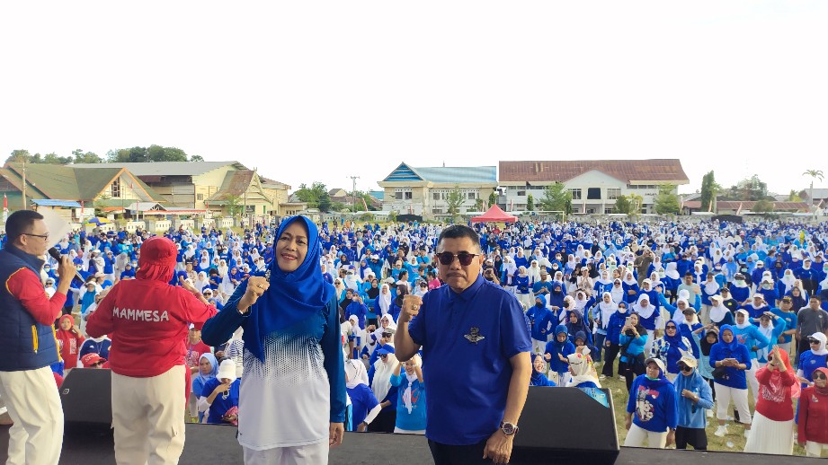 MAJENE — Mammesa group menggelar kegiatan Zumba Party yang ikuti peserta kurang lebih 3000 Orang dengan Dress code Biru putih. kegiatan Zumba Party dalam rangka menyambut Hari jadi Majene yang Ke-479 dan HUT Proklamasi RI Ke-79 Tahun 2024 yang dilaksanakan di Stadion Prasamya mandar majene. Prov, Sulawesi Barat, Minggu (4/8/2024)